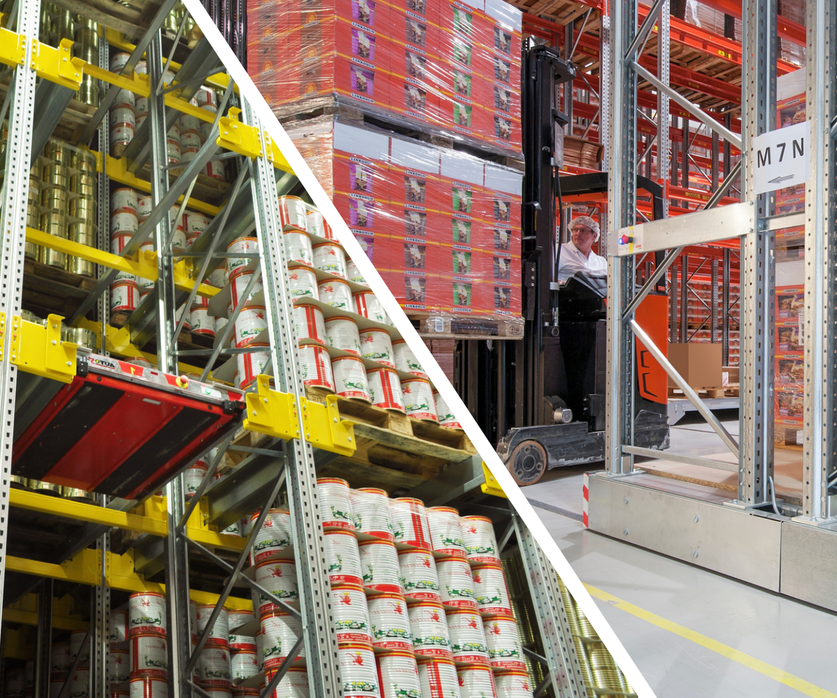 Fleksibilitet i lagerstyring: Ideel til First In, First Out (FIFO)-operationer, hvor du arbejder fra den ene side af reolen. Systemet understøtter også Last In, First Out (LIFO), hvis det er nødvendigt. I dette tilfælde udføres arbejdet på begge sider af reolen (en indgangsside og en udgangsside). Valget afhænger af lagerets behov og den tilgængelige plads.
