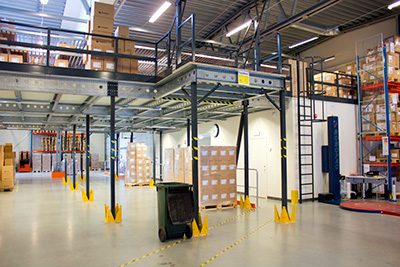 En mezzanin er bygget af stålprofiler og har en lang række anvendelser: De kan bruges som ekstra salgsareal, lagerplads, kontorlokaler, til driftsfunktioner og alt derimellem.