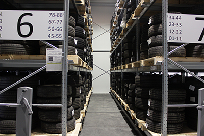Dæklageret åbner kl. halv syv hvor en plukseddel ligger klar til de hjulsæt, der skal skiftes på værkstedet i løbet af den kommende arbejdsdag. En medarbejder plukker sættene og transporterer dem ind på det tilstødende værksted, hvor de er klar når kundebilerne ankommer.