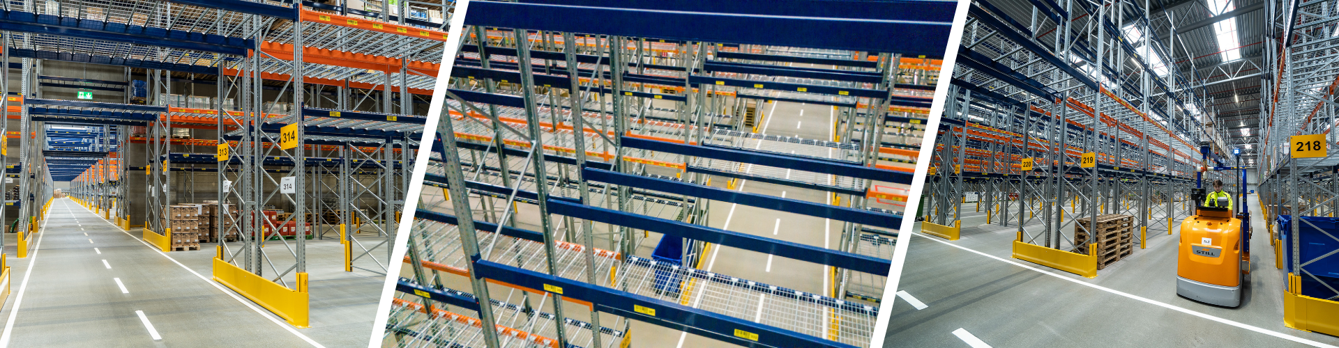 Pallereolerne fordeler sig over flere haller, men i alt er der leveret 25.158 pallepladser. Reolstigerne har flere højder, de fleste er enten 9 eller 10 meter høje. Selve bjælkerne er lakeret i 2 farver der indikerer hver sin belastningsevne. Bjælkerne i den blå FTZ RAL 5013 kan klare 700 kg, mens den orange RAL 2001 kan tage 1000 kg belastning.
